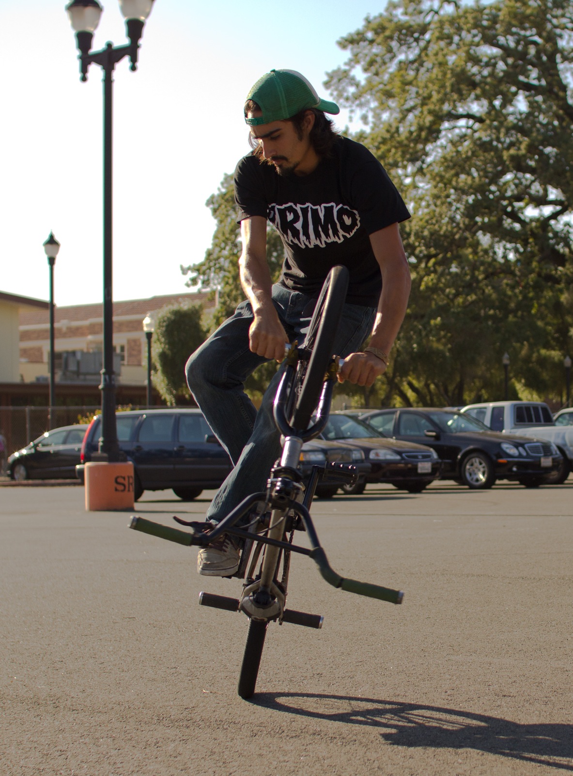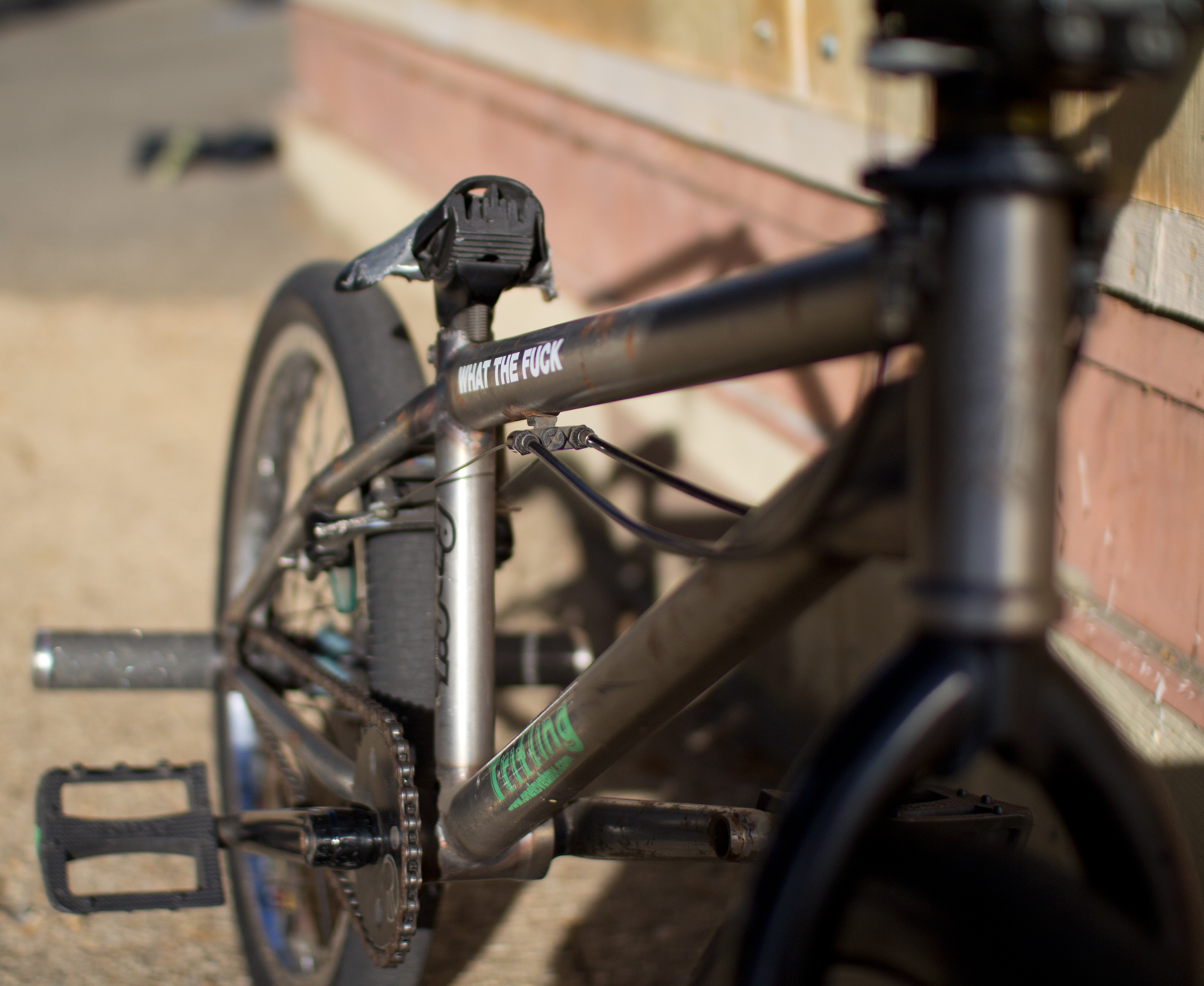 If you’re just starting out, experiment with different setups and find what works for you. I would recommend, in the beginning, not setting your bike up in a way that would limit the types of tricks you learn. Learn a variety of tricks, so don’t be afraid to try a variety of setups. Don’t be afraid of brakes, high seats, under 9″ bars. Sometimes the trendiest bikes aren’t the easiest to ride flatland on. Whichever way you set your bike up ultimately does not matter too much; how much you ride your bike and how much fun you’re having is the most important.