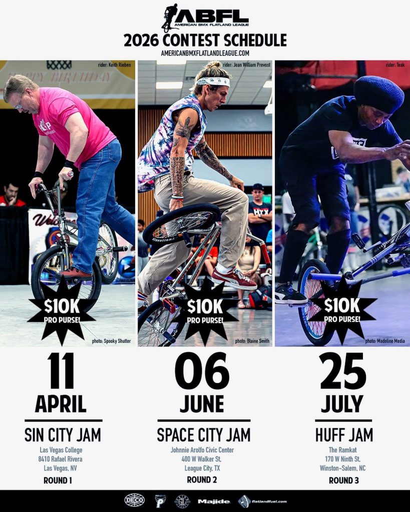 Hammond, LA (January 15, 2026) – We’re back for year three of the American BMX Flatland League! Here are our contests this year;